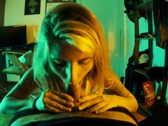 Filthy blond honey gargles man meat while her counterpart